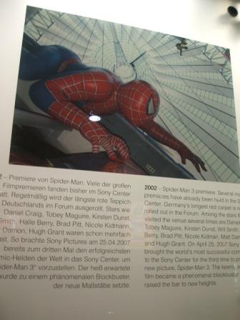 先の式典で大賀会長が述べたとおり、ソニー・センターの奇抜な外観はいかにもデザイン重視のソニー製品にマッチしており、同社のブランド・イメージにうまく合致しているように思われる。またソニー・センターにはベルリン映画博物館が入居し、またベルリン国際映画祭の会場としても使用されるなど、映画とのつながりも深い。この面でも映画も含めコンテンツ面でも積極的な展開を探ってきた近年のソニー路線を体現しているようでもある。(右は『スパイダーマン』公開に際しての同センターでのイベント)