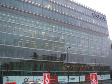 売却成立後には「ソニー・センター」の名称が変更される可能性が否定できない。現実は甘くはない、と言えばそれだけの話である。バブル時代の思慮を欠いた資産戦略のツケだ、という言い方もできるのだろう。しかし「この広場を世界の交差点にしよう」という統一ベルリンの夢に参加した日本企業の若々しい意気込みが、名前とともに消えさってしまうように感じられるのは、やはりさみしい。(左は同センター一角のソニー欧州本社。)