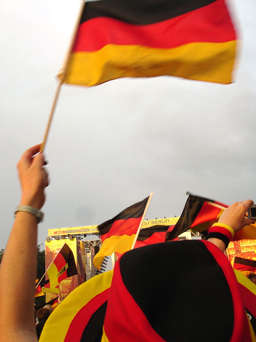 シャツや帽子、スカーフやスカートにまで、黒赤金を自在にアレンジして足取り軽くドイツチームの応援に出かける人々の姿を見ながら、そんなことを考えさせられた。